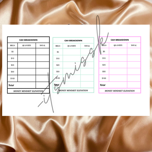 CASH BREAKDOWN TELLER SLIP (INSTANT DOWNLOAD)