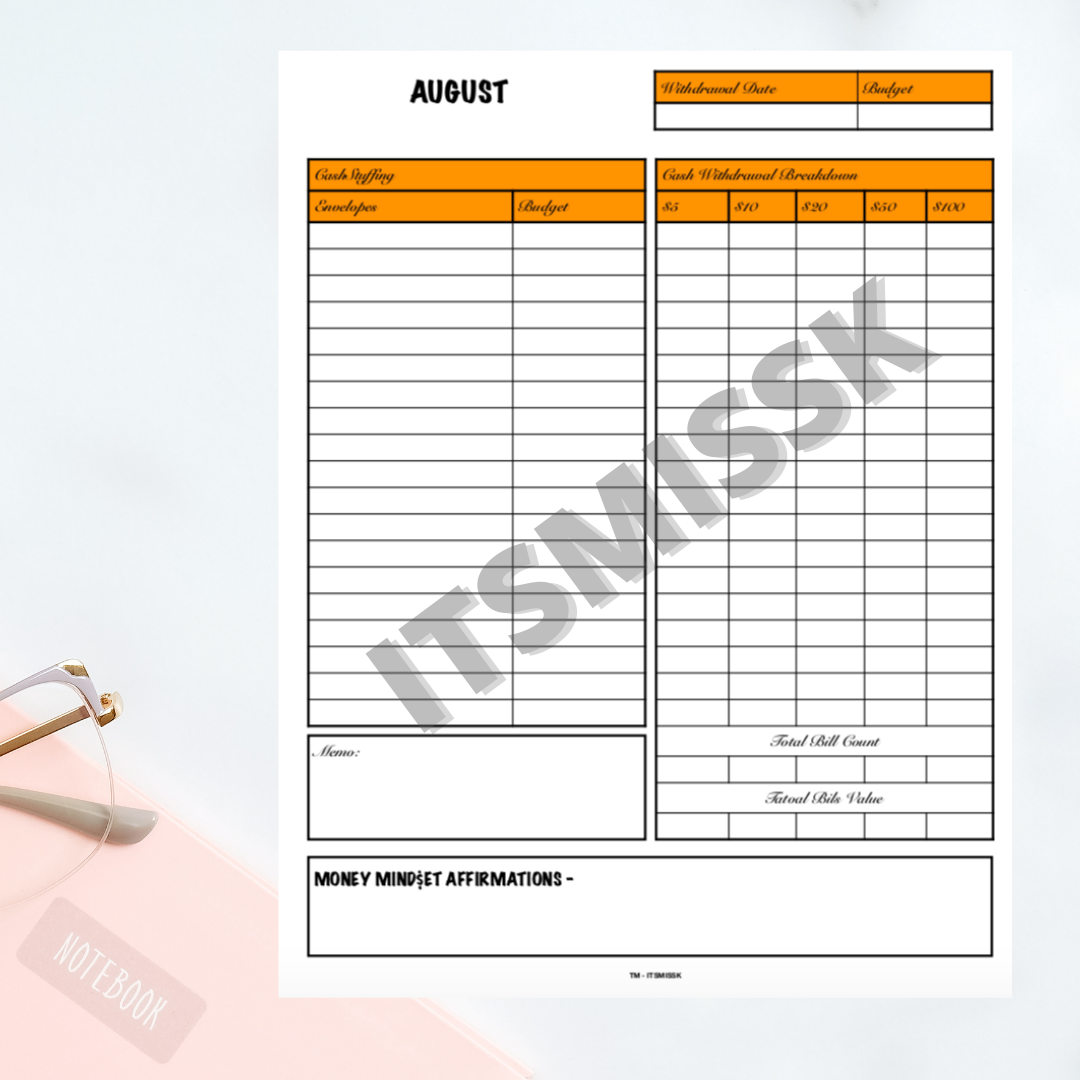 - You will be able to tally up the total to ensure that all is in order and matches your allocated budget for your cash stuffings.