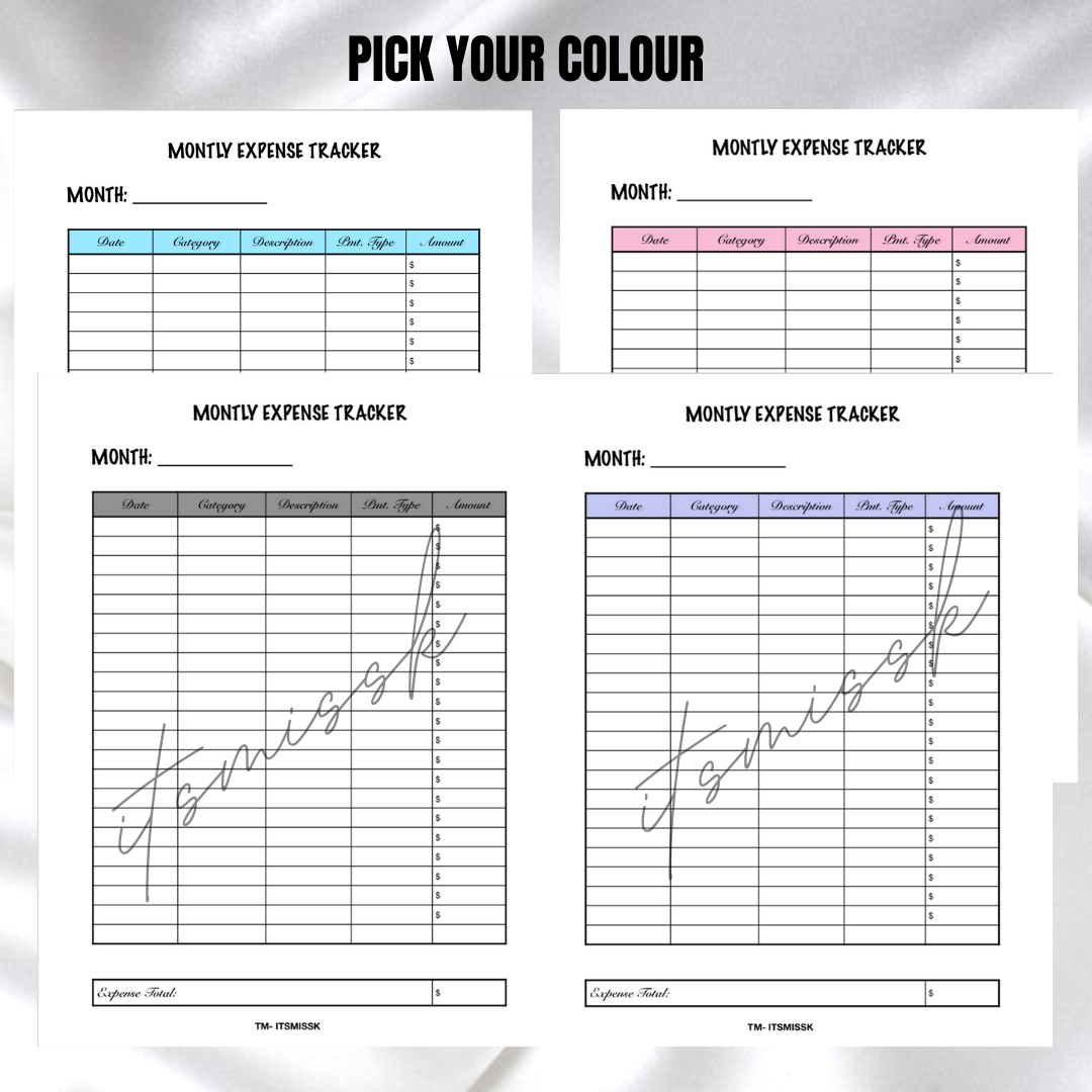 MONTHLY EXPENSE TRACKER SHEET (INSTANT DOWNLOAD)
